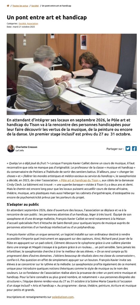 Nos autres passages dans les médias, retrouvez les moments forts où le Pôle art & handicap du Tison a été mis en lumière :